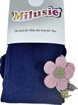 Milusie Rajstopy Dziewczęce Wiskoza Prążek Kwiatek 68 - 158 Granatowe