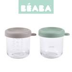 Beaba Zestaw pojemników słoiczków szklanych z zamknięciem 2 x 150 ml Mineral/Sage green