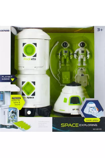 Całość wykonana z plastiku. Wymiary produktu dł. x wys. x gł. cm -statek 12x35x12, -kosmonauta 5x8x2, wymiar opakowania dł. x wys. x gł. cm 29x19x13 , waga produktu bez opakowania kg 0,65 kg, waga produktu w opakowaniu kg 0,84 kg, wymaga zasilania bateriami -statek kosmiczny 2x 1,5V AALR06- załączono do zestawu.