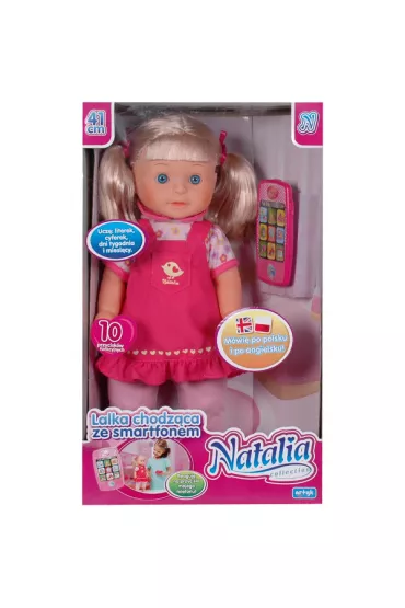 Lalka Natalia chodząca ze smartfonem to nie tylko wspaniała towarzyszka zabawy. To także doskonała nauczycielka, dzięki której można poznać nazwy dni tygodnia, literek, a nawet słówek w języku angielskim. Wystarczy nacisnąć jeden z 10 przycisków na dołączonym do zestawu smartfonie i poczekać na reakcję lalki. Być może zaśpiewa fajną piosenkę? A może zacznie chodzić? Ta funkcjonalna lalka interaktywna ma wszystkie predyspozycje do tego, by zostać tą ulubioną z całej domowej kolekcji lalek.