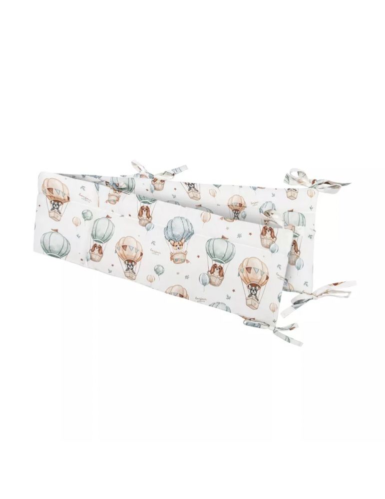 Produkt jest wypełniony włókniną puszystą silikonową, posiada liczne troczki do zamocowania na szczebelkach łóżeczka.