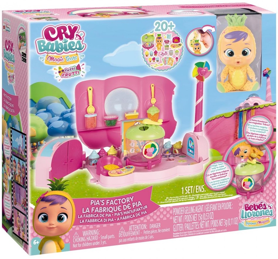 Odkryj fabrykę Tutti Frutti! Baw się z Pią w różnych częściach fabryki i używaj jej akcesoriów do robienia koktajli, dżemów, soków i galaretek.