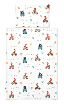 Pościel dziecięca 135 × 100 to dwuelementowy zestaw składający się z poszewki na kołdrę oraz poszewki na poduszkę 40 × 60 cm.