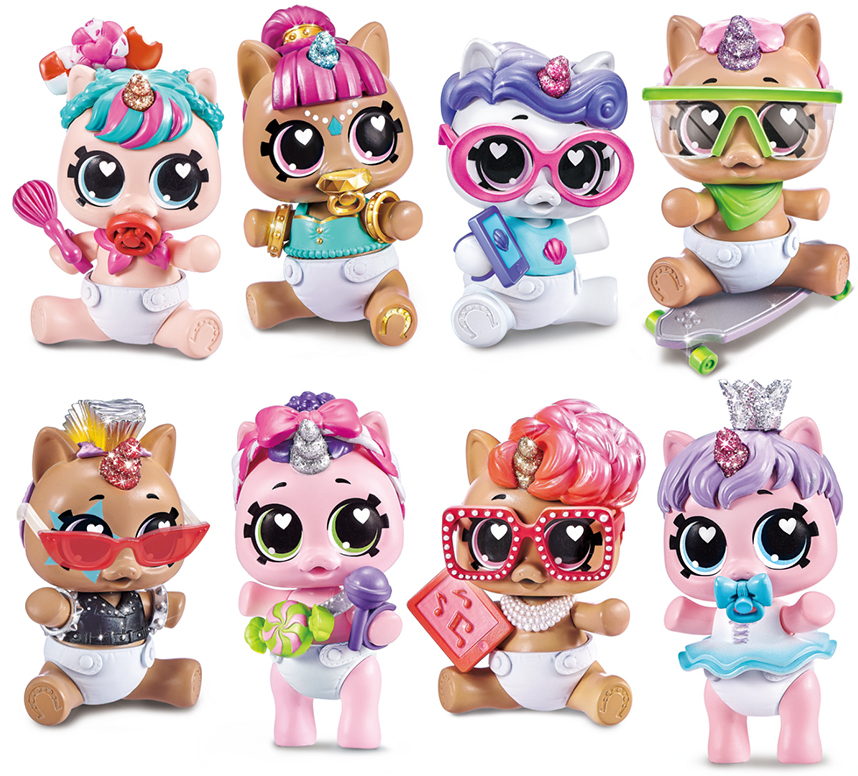 W jednej wykonanej z kolorowego tworzywa kuli znajduje się pięć czarujących niespodzianek. Pierwsza z nich to bobasek-jednorożec, z kolorowym, błyszczącym rogiem, włoskami i uroczymi dodatkami wskazującymi jego osobowość. Dziecko może stworzyć całą kolekcję z ośmiu takich słodkich, barwnych jednorożców-bobasków.