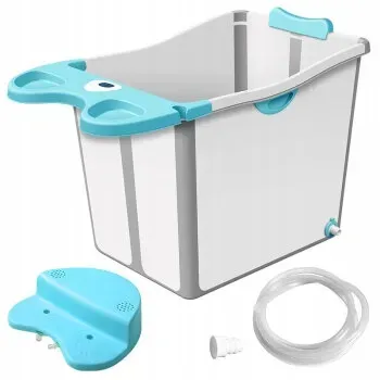 Funkcjonalna składana wanienka dla dziecka wykonana z wysokiej jakości tworzywa sztucznego i silikonu. Kształt jest przestronny i wygodny. Wygodny odpływ. Wanna posiada przegródki na mydło i środki higieniczne, więc wszystko co potrzebne jest zawsze w pobliżu.
