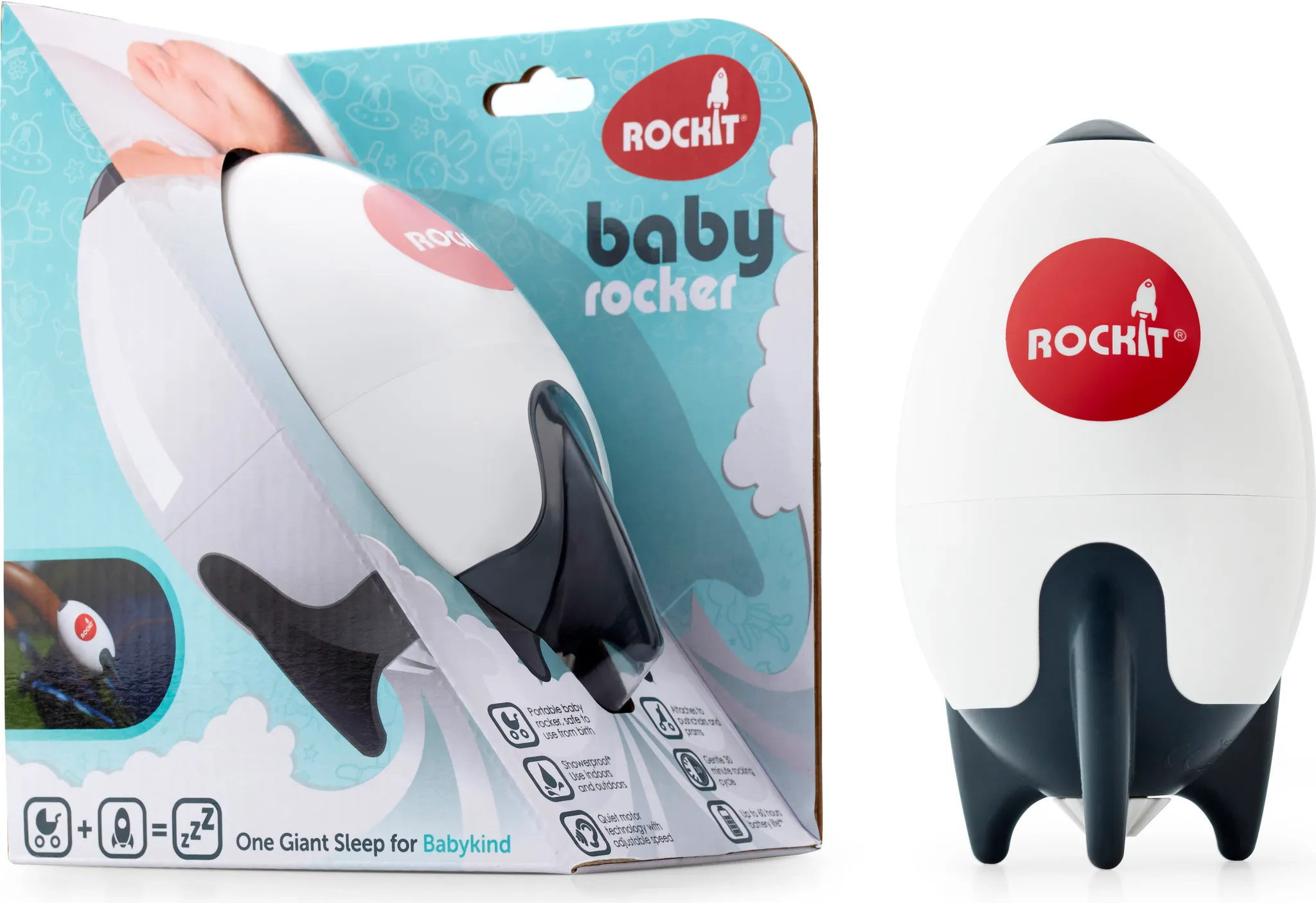 Rockit Baby Rocker pomaga dziecku zasnąć w dowolnym miejscu. Rockit jest mocowany do wózka za pomocą uchwytu montażowego. Wiele dzieci uwielbia, gdy wózek jest delikatnie kołysany w przód iw tył, a następnie śpi jak kamień. Rockit Baby Rocker delikatnie kołysze wózek do przodu i do tyłu, dzięki czemu można zająć się czymś innym. Rockit działa przez 60 godzin na 4 bateriach AA i zatrzymuje się automatycznie po 30 minutach. Prędkość kołysania można łatwo regulować. Ponieważ Rockit jest wodoodporny, można go używać zarówno w pomieszczeniach, jak i na zewnątrz. Akcesoria obejmują dodatkowy uchwyt montażowy, który jest osobno, dzięki czemu można łatwo przełączać Rockit między różnymi wózkami dziecięcymi.