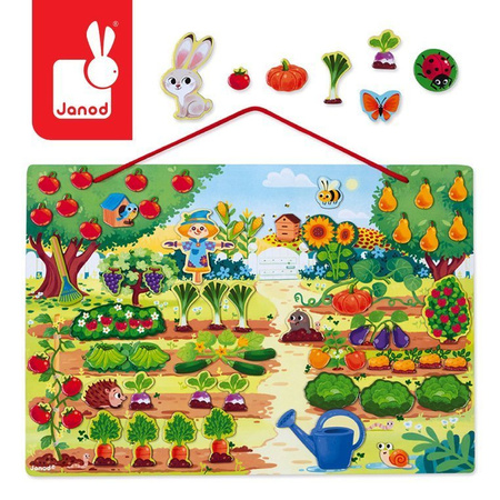 Janod Układanka drewniana magnetyczna z 70 magnesami Ogród