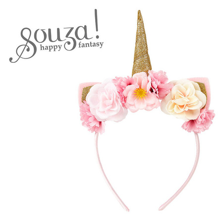 Souza! Opaska z kwiatami i złotym rogiem jednorożca