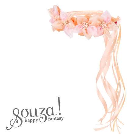 Souza! Opaska do włosów wianek ze wstążkami, kwiatami i cekinami Evaline różowo-łososiowa