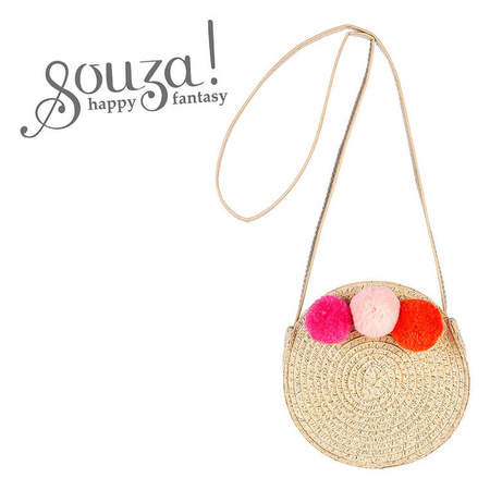 Souza! Torebka na ramię dla dzieci okrągła słomkowa naturalna z pomponami Alba