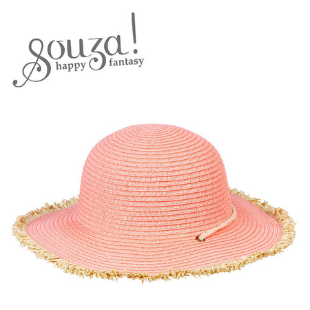 Kapelusz słomkowy Celeste holenderskiej marki Souza! Uroczy, okrągły, pleciony kapelusz z szerszym rondem. Ma różowy kolor, ozdobny sznurek i lamówkę z postrzępionej słomki w naturalnym kolorze. Wygodny do noszenia i perfekcyjnie wykończony. Idealny na obwód głowy do 52 cm. Stanowi idealny dodatek do kostiumu lub letniego stroju. Sprawdzi się także jako prezent.