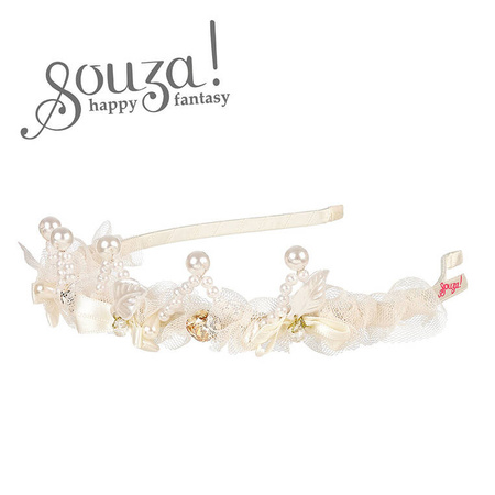 Souza! Opaska z mini-koroną z perełek i zdobieniami kremowa Juno
