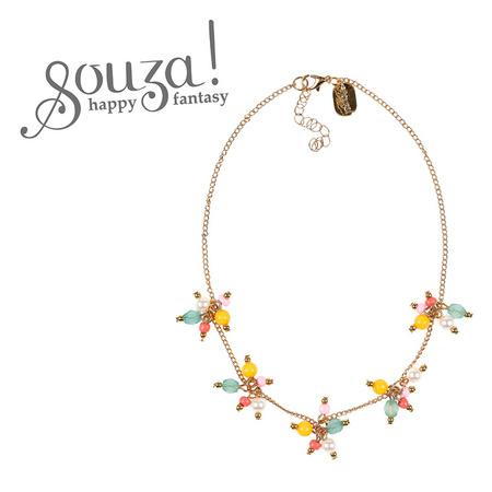 Naszyjnik łańcuszek Valeia holenderskiej marki Souza! Ozdobiony jest pięcioma zawieszkami z kolorowych koralików. Ma 40 cm długości, regulowane zapięcie i jest wygodny do nakładania. Biżuteria jest nietoksyczna i nie podrażnia skóry. Idealna zarówno na przyjęcia, jak i do noszenia na co dzień. Sprawdzi się także jako stylowy prezent.