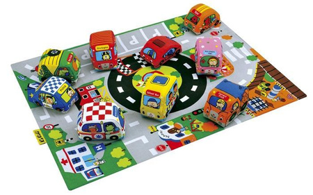 „Brum, Brum” auta jeżdżą wokół miasta. Mata - miniaturowe miasto (ze szkołą i strażą pożarną), jest sprzedawana razem z 9 miękkimi samochodzikami. Auta są wielokolorowe oraz przedstawiają różne zawody i liczby. To wspaniały sposób do zabawy w odgrywanie ról oraz nauki poprzez zabawę. Małe samochody grzechoczą i piszczą.
