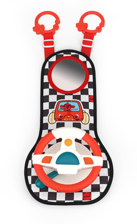 Zabawka inteligentna oferująca dzieciom wrażenia jazdy symulacyjnej. Zawiera; realistyczną kierownicę, deskę rozdzielczą, klakson, kierunkowskaz oraz lusterka, dzięki którym dziecko skłaniane jest do logicznego myślenia a także rozwija swoje zmysły dotyku, słuchu i wzroku.