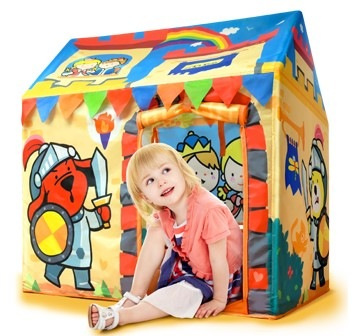 Namiot Szczęśliwy Zamek jest przeznaczony dla dzieci, aby symulować przygodę w królewskim pałacu. Gry w znajdowanie przedmiotów ułatwiają komunikację między rodzicami a maluchami oraz pobudzają kreatywność i wyobraźnię najmłodszych. Nadaje się do użytku wewnątrz i na zewnątrz, z łatwością tworzy raj dla zabawy dla dzieci. Idealna alternatywa na spędzenie czasu w deszczowe dni jak i kryjówka w upalne po południe.