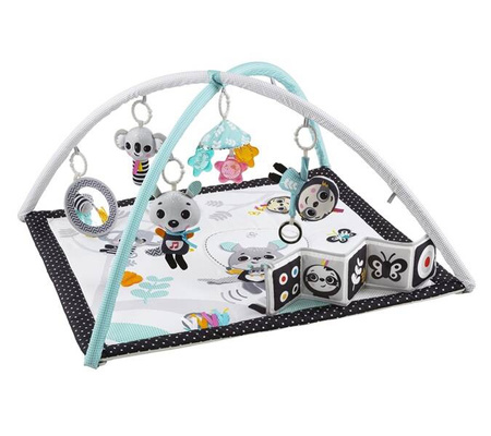 Mata dla niemowlaka z mnóstwem angażujących zabawek i tektur, które pomogą stworzyć miejsce pierwszych aktywności malucha. Mata jest kompaktowa, dzięki czemu zabierzesz ją ze sobą wszędzie gdzie tylko potrzebujesz.