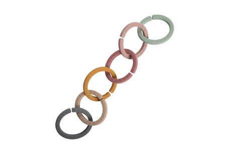 Pierścienie kółka Bo Jungle to zestaw 6-ciu sztuk w pięknych pastelowych kolorach. Są wykonane w 100% z silikonu bez BPA, dzięki czemu są bardzo miękkie w dotyku, trwałe i bezpieczne. Będą towarzyszyć Twojemu dziecku wszędzie i mogą spełniać rolę silikonowego gryzaka, który pomaga koić swędzące dziąsła podczas ząbkowania oraz być zabawką. Maluch składając je, będzie rozwijać swoje umiejętności motoryczne. Jest to także praktyczny drobiazg, z kółek można zrobić łańcuszek i przymocować ulubione zabawki dziecka do wózka, łóżeczka, uchwytu fotelika samochodowego lub pałąka maty sensorycznej. Dzięki kołeczkom ukochane zabawki dziecka są bezpieczne i zawsze pod ręką, nie trzeba się martwić, że się zgubią.