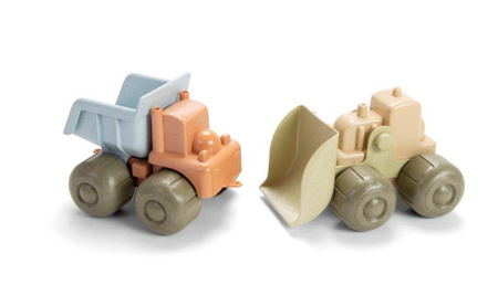 Solidny mały zestaw aut budowlanych z koparką i wywrotką w stonowanych, naturalnych kolorach. Idealnie pasują do małych dłoni,są przyjemne w dotyku, można nimi bawić się zarówno wewnątrz, jak i na zewnątrz. Po przejechaniu przez piaskownicę lub kałuże można je łatwo wyczyścić w zmywarce do naczyń. Auta gwarantują godziny zabawy malucha, ich elementy są ruchome - zarówno łyżka koparki jak i część załadunkowa koparki.