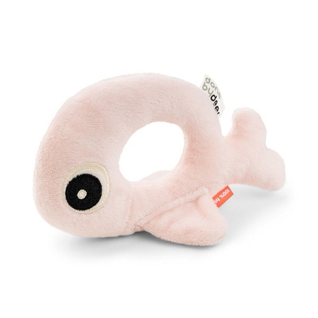 Grzechotka ring Wally to świetny przyjaciel i towarzysz zabaw. Grzechotka ring została zaprojektowana tak, aby dziecku było wygodnie ją chwytać, ćwicząc umiejętności motoryczne. Przyjemny dźwięk grzechotki zachęca dziecko do zabawy. Urocza grzechotka Wally posiada płetwy po obu stronach, co umożliwia jej postawienie, dzięki temu świetnie sprawdzi się także podczas zabawy na brzuszku zachęcając maluszka do unoszenia główki.