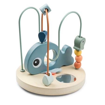 Dzięki drewnianemu labiryntowi Wally dziecko może ćwiczyć umiejętności motoryczne oraz chwyt pęsetowy, przesuwając koraliki i rybki z jednego końca na drugi. Wieloryb i morskie elementy zainspirują malucha do poznawania morskich stworzeń.