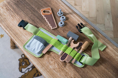Piła, pilnik, miara, klucze i inne akcesoria, które pomagają w zabawie i odkrywaniu nowych ról