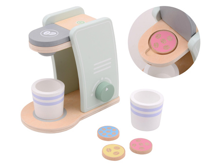 Drewniany ekspres do kawy na kapsułki jest idealny dla dzieci od 24 m-ca życia i wprowadza maluchy przez zabawę do wspaniałego świata urządzeń kuchennych. Coraz więcej i bardzo różnych urządzeń znajduje się w kuchni i dlatego świat fantazji dziecięcej i ich zabaw musi być na bieżąco. Piękny pastelowy i nowoczesny ekspres pomaga wyobraźni. W komplecie są 3 różne kapsułki kawy, które można wymiennie umieszczać w ekspresie, a następnie podać pyszną kawę w drewnianym kubeczku. Długa zabawa jest gwarantowana i piękny element do drewnianej kuchni tej marki - a w ofercie także do skompletowania mikser, blender i toster!