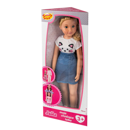 Lalki, to najstarsze znane światu zabawki. Niewątpliwą ich zaletą jest to, że można bawić się nimi wszędzie – zarówno w podróży, w domu, czy wszędzie tam, gdzie dziecko postanowi zabrać swoją lalę. JULKA zostanie towarzyszką spacerów dla małej dziewczynki i najlepszą przyjaciółką. Lala ubrana jest w ładny komplecik ze spodniczką, który sprawdzi się na spacerku na placu zabaw czy parku. Prowadzona za rękę, będzie dzielnie podążać za swoją małą przyjaciółką. Lalka ma długie blond włosy, uczesane w warkocz,który można przeczesać dowolnie,zmieniając Julce fryzurę. Można ją przebierać w inne stroje ( trzeba dokupić oddzielnie). UWAGA! lALKA NIE JEST NA BATERIE,NIE CHODZI SAMODZIELNIE, TRZEBA PROWADZIĆ JĄ UMIEJĘTNIE ZA RĘKĘ. SPECYFIKACJA: • SP83933 AN01 • EAN 5905375839338 • wym. 29,5 x 71 x 14,5 cm • wiek 3+ • marka Smily Play