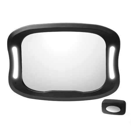 Duże, regulowane lusterko samochodowe z oświetleniem LED holederskiej marki Titanium Baby to niezwykle praktyczny przedmiot podczas jazdy samochodem, który pozwoli obserwować dziecko w foteliku, usadzone tyłem do kierunku jazdy. Lusterko to zostało zaprojektowane, aby pomóc rodzicom mieć oko na swoje dziecko podczas jazdy, jest mocowane do zagłówka tylnego siedzenia. Funkcja LED może zapewnić dodatkową widoczność lub delikatne światło, aby pomóc monitorować dziecko w warunkach słabego oświetlenia. Delikatne światło nie obudzi śpiącego dziecka. Oświetlenie można włączać i wyłączać za pomocą dołączonego pilota. Pilot może być zawieszony za pomocą klipsa w miejscu, które jest w zasięgu ręki, aby wspólne podróżowanie było bezpiecznie i wygodnie.Obrotowy mechanizm pozwala regulować kąt ustawienia 360 stopni w zależności od ułożenia dziecka, budowy foteli w aucie, czy innych, indywidualnych czynników.
