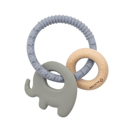 Olmitos Gryzaczek silikonowo-drewniany z kółkiem słoń zielony