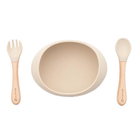 Olmitos Miseczka silikonowa ze sztućcami beżowy
