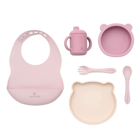 Olmitos Zestaw obiadowy silikonowy 7-elem. różowy