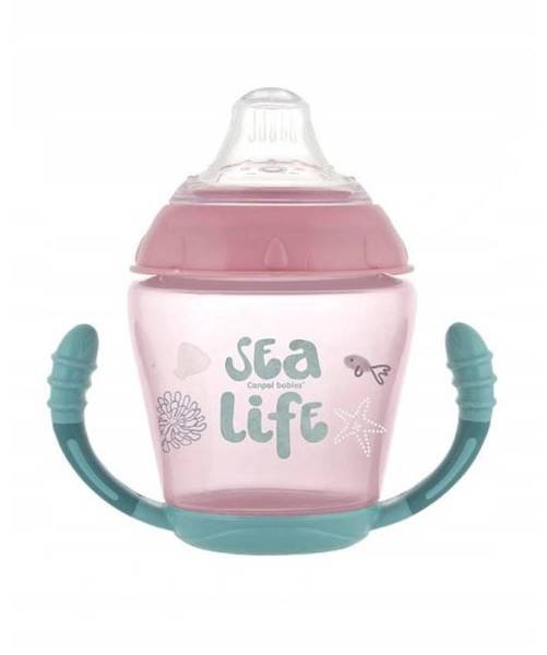 Canpol Babies Sea Life Kubek Niekapek Miękki Silikonowy Ustnik 230ml Różowy