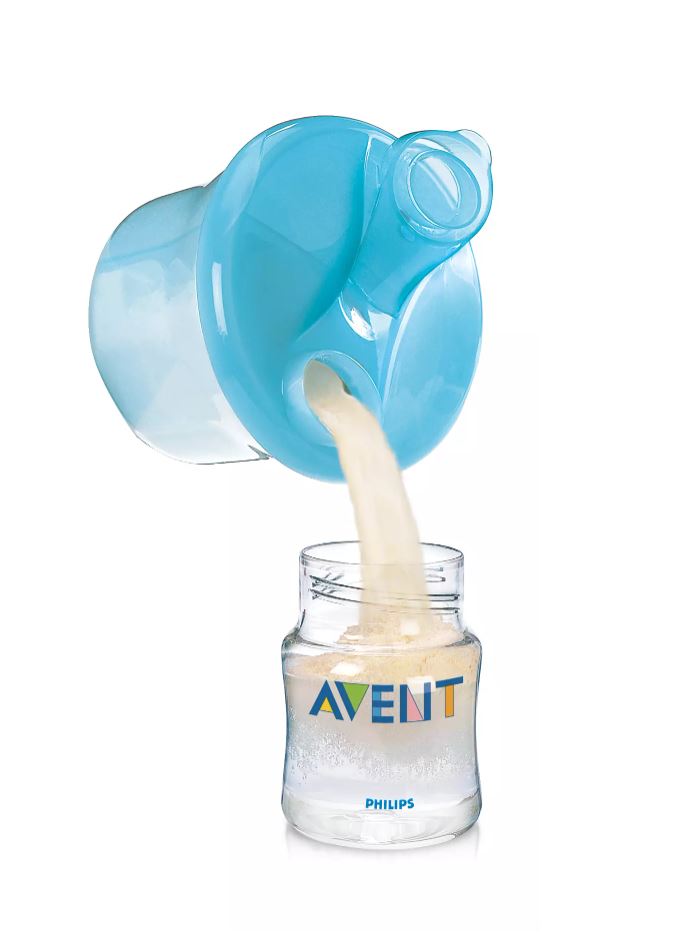 Dozownik mleka w proszku Philips Avent mieści 3 odmierzone wcześniej porcje — idealnie sprawdza się w podróży