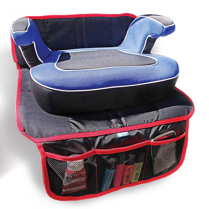Przedni organizer składa się z trzech siateczkowych kieszonek, które pomieszczą niezbedne w podróży drobiazgi. Mata pasuje do wszystkich typów fotelików dziecięcych i wszystkich foteli samochodowych.
