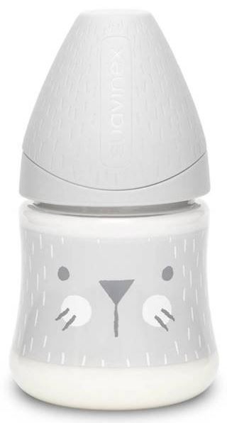 Suavinex Butelka 150ml Premium smoczek okrągły silikonowy o wolnym przepływie Kotek szary Hygge Baby