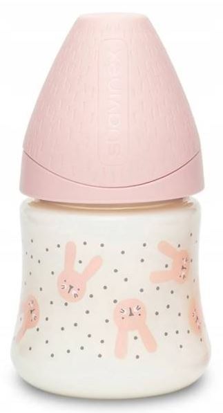 Suavinex Butelka 150ml Premium smoczek okrągły silikonowy o wolnym przepływie Królik różowy Hygge Baby