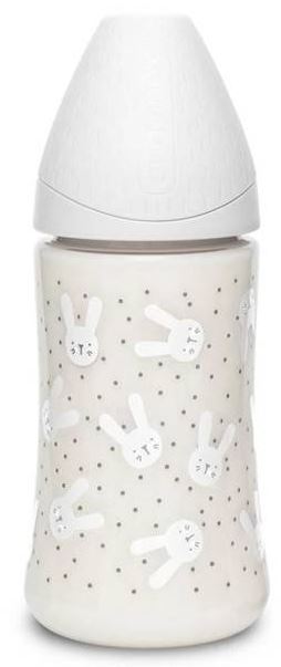 Suavinex Butelka 270ml Premium smoczek okrągły silikonowy 3 przepływowy Królik Szary Hygge Baby