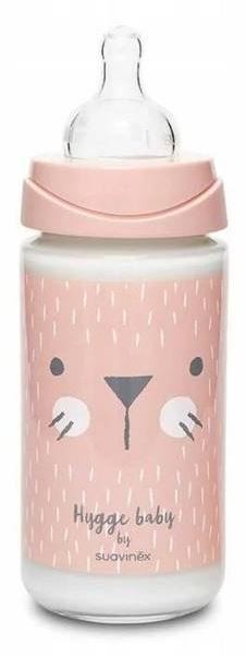 Suavinex Butelka szklana 240ml smoczek okrągły silikonowy 3 przepływowy Kotek różowy Hygge Baby