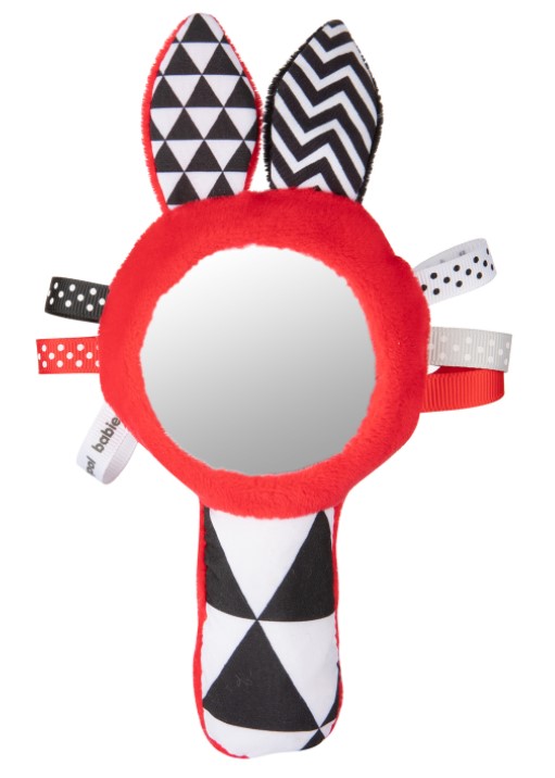 Canpol Babies Zabawka kontrastowa z piszczkiem i lusterkiem z pewnosią przypadnie twojemu maluszkowi do gustu. Kontrastowe wzory i kolory doskonale pobudzą wzrok malca oraz wzbudzą w nim ciekawość. Lusterko potrafi zając niemowlaka na długi, dłuuugi czas, a jeśli dodać do tego ukryty w zabawce piszczek mamy przepis na świetną zabawę bobasa. Zabawka jest na tyle mała, że z łatwością zmieści się w malutkich, dziecięcych łapkach.