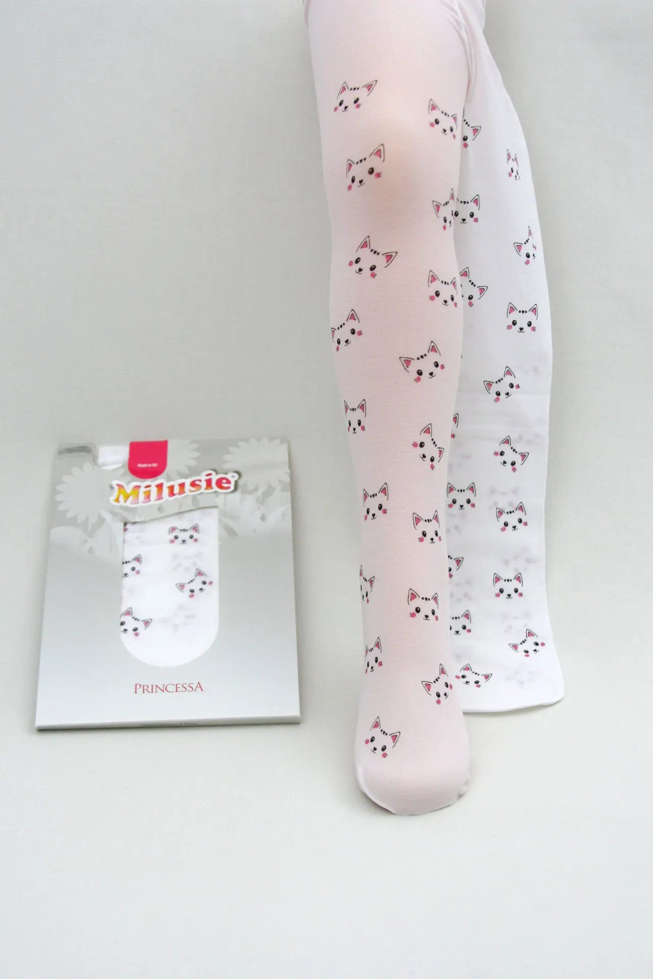 Milusie Rajstopy Białe 40 DEN w Błyszczące Brokatowe Kotki 80-86 Rozmiar