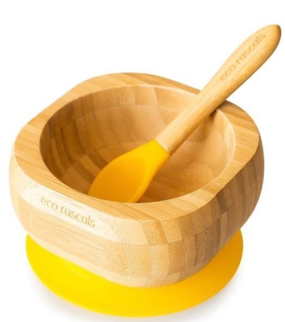 ECORASCALS Miseczka Bambusowa z Przyssawką i Łyżeczką