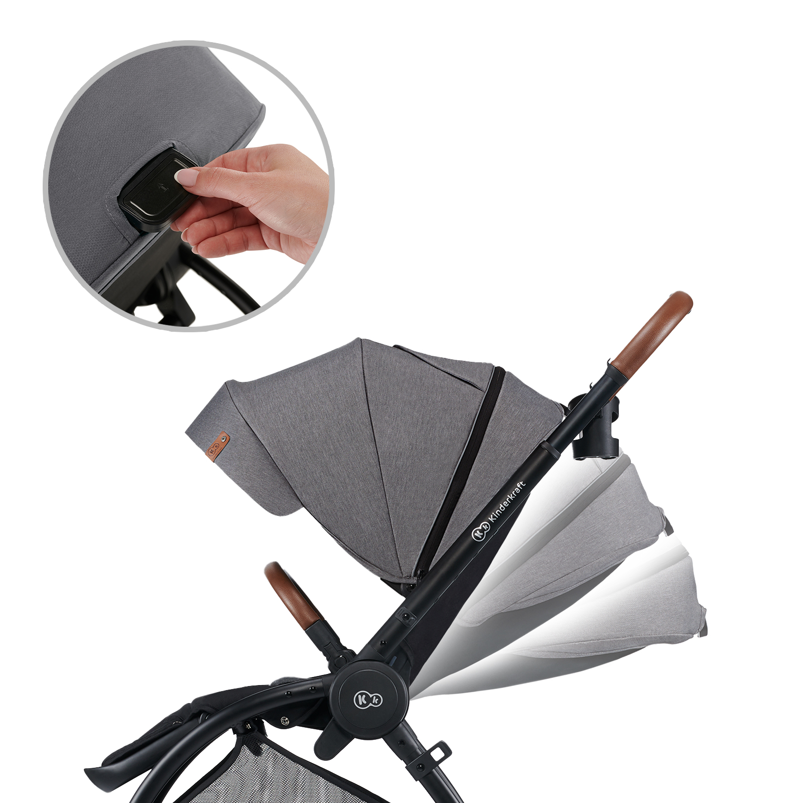 Gondolę Cocoon mocuje się bardzo łatwo na rozłożonym siedzisku spacerowym wózka Kinderkraft Evolution. Paski gwarantują stabilne zamocowanie gondoli (czyt. dziecko będzie bezpieczne).