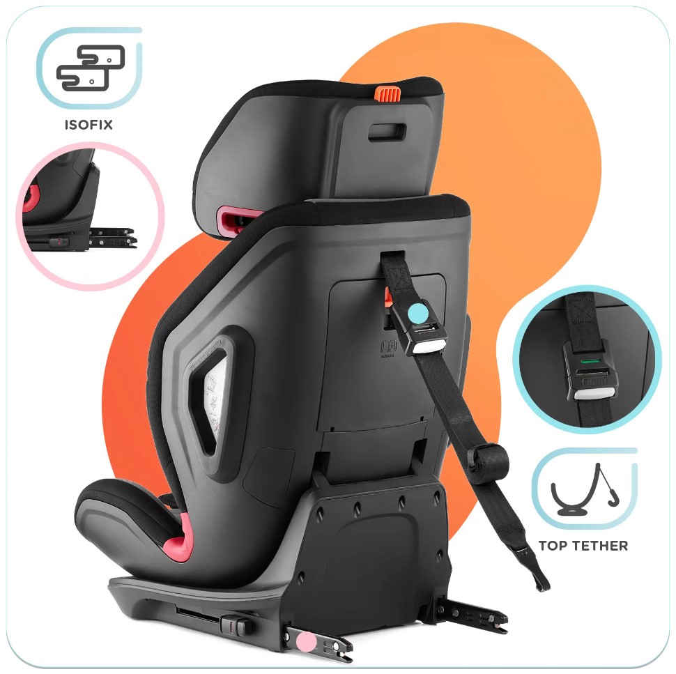 Montaż ONETO3 2021 jest prosty i intuicyjny dzięki systemowi ISOFIX oraz TOP TETHER. Nie tylko łatwo zamontujesz fotelik w aucie, ale również będziesz mógł zamontować fotelik w samochodzie bez ISOFIX (na pasy samochodowe).