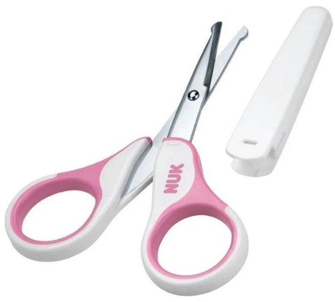 Nożyczki dla niemowląt Nuk mają ostrza wykonane ze stali nierdzewnej. Ich końce są zaokrąglone, dzięki czemu są zupełnie bezpieczne dla maluszka. Antypoślizgowe miękkie uchwyty pewnie leżą w dłoni. Na czas przechowywania nożyczki możesz schować w plastikowej osłonce. Z tymi nożyczkami wygodnie i bezpiecznie zadbasz o paznokcie swojej pociechy.