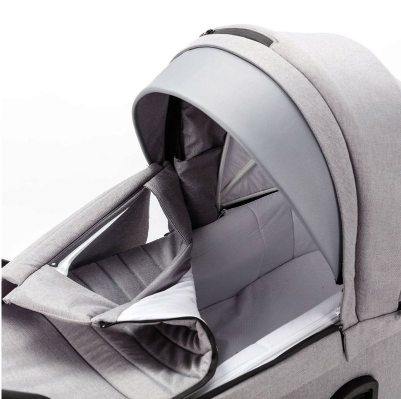 Nowoczesna gondola wykonana jest z piocelanu, który daje doskonałą izolację termiczną i akustyczną przy zachowaniu najniższej wagi. Posiada otwory i kanały wentylacyjne dla utrzymania właściwego komfortu termicznego. Odpinany daszek przeciwsłoneczny i rozpinany segment budki z oknem wentylacyjnym zwiększają komfort podróżowania. Rozpinany pokrowiec umożliwia szybki dostęp do dziecka bez konieczności zdejmowania całego pokrowca.
