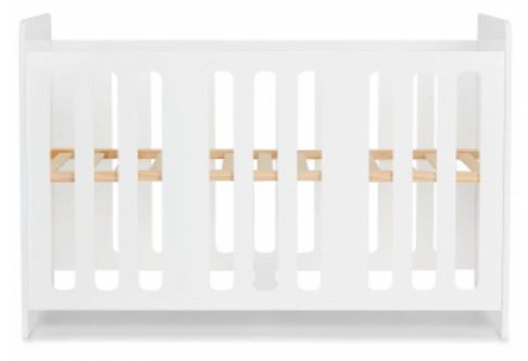 Solidne łóżeczko o bardzo delikatnej stylistyce. Posiada trzy poziomy wysokości dna, dzięki czemu z łatwością dopasujesz jego głębokość do aktualnych potrzeb. Zostało ono pokryte bezpieczną dla dzieci farbą, a szczebelki i kanty, zostały zaokrąglone.