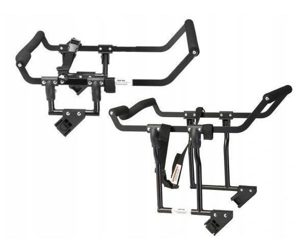 Adapter Maxi-Cosi podwójny A+B umożliwia montaż dwóch fotelików na stelażu wózka Valco Baby Snap Duo oraz Snap Duo Sport. Adapter mocowany jest w miejscu pałąka. Fotelik po osadzeniu na adapterze stabilizowany jest za pomocą paska (w komplecie z adapterami).