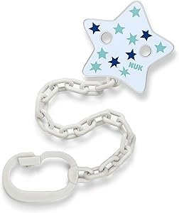 Łańcuszek na smoczek NUK zapobiega upadkowi ulubionego smoczka na podłogę lub zgubieniu. Pasek można łatwo przymocować do ubrania dziecka dzięki prostemu systemowi klipsów. Za pomocą dużego, wytrzymałego haczyka łańcuszek na smoczek jest mocowany do smoczka. Klips, łańcuszek i haczyk są wykonane z wytrzymałego, odpornego na pęknięcia tworzywa sztucznego Tritan i PE. Dostępne w różnych uroczych i kolorowych wzorach pasujących do osobowości Twojego dziecka.