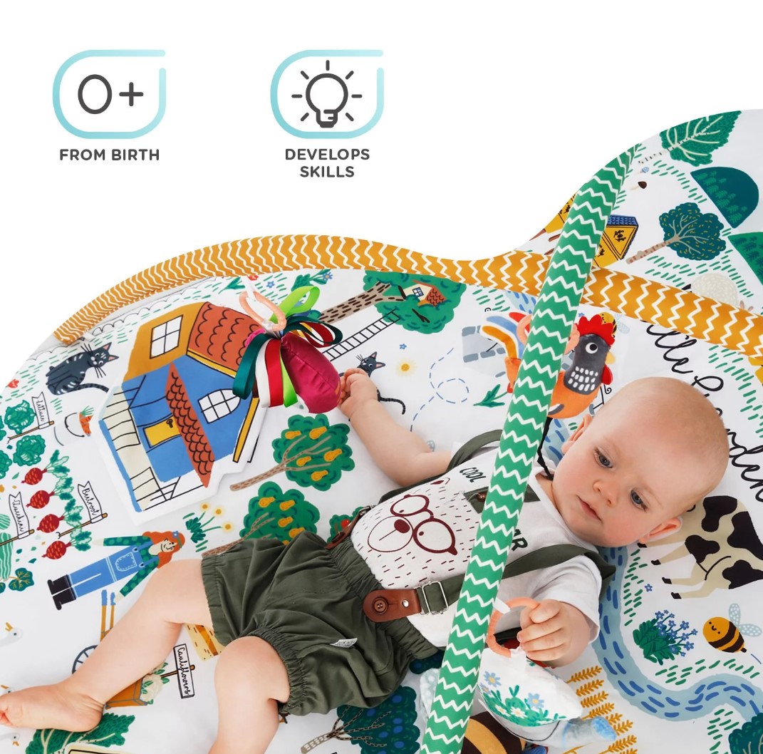 Mata edukacyjna LITTLE GARDENER wspiera rozwój dziecka już od pierwszych miesięcy życia: dzięki swoim pięknym, ogrodowym nadrukom zachęca malca do podnoszenia głowy, wyciągania rączek po zabawki i obracania się z brzucha na plecy. Doskonali koordynację wzrokowo-ruchową.